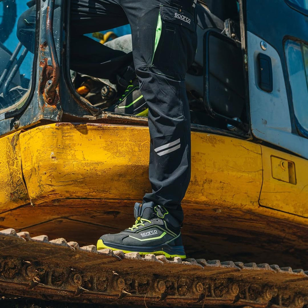 El Sparco Indy S3S Juri ESD SR FO LG es un zapato de seguridad de nobuk hidrófugo diseñado para una mayor protección y un confort óptimo. Conforme a la norma EN ISO 20345:2022, combina una puntera de fibra de vidrio de 200 J, una entresuela textil antiperforación y una suela Flexgrip+ que ofrece un excelente agarre en suelos lisos, escaleras y peldaños. Con su caña alta, su hebilla de cierre rápido y su amortiguación de doble densidad, combina sujeción, comodidad y seguridad. Con un peso de sólo 510 g (talla 42), son ideales para entornos de construcción, mantenimiento y logística, donde la robustez y la estabilidad son esenciales.