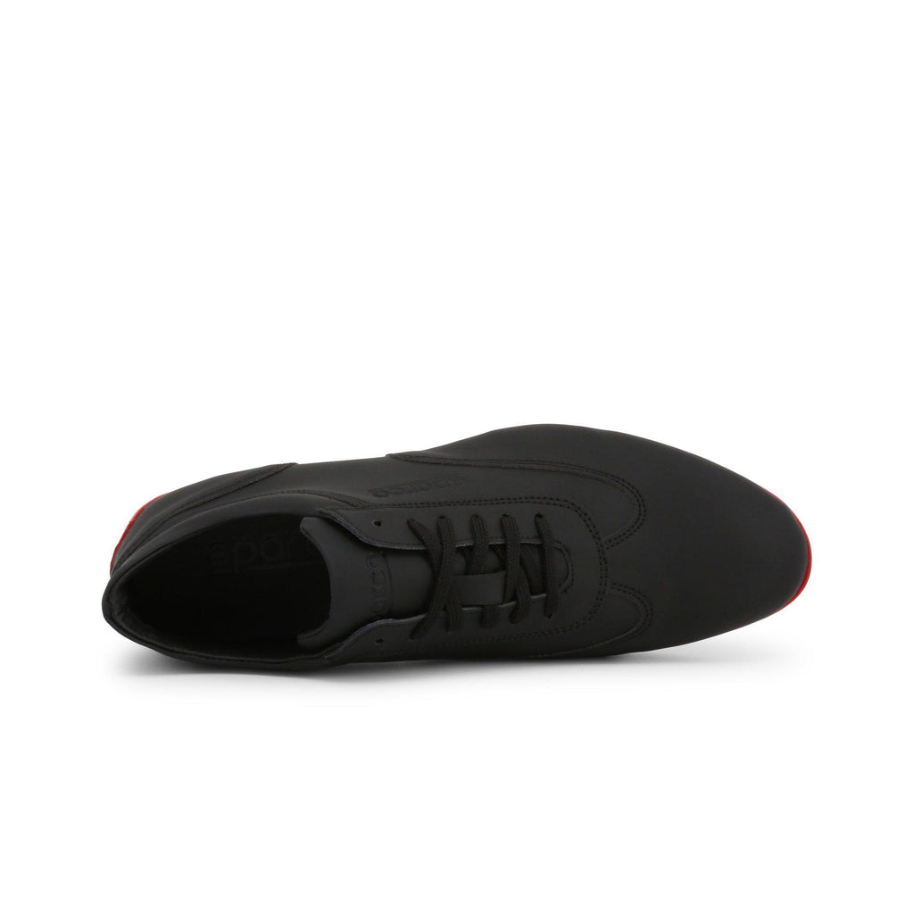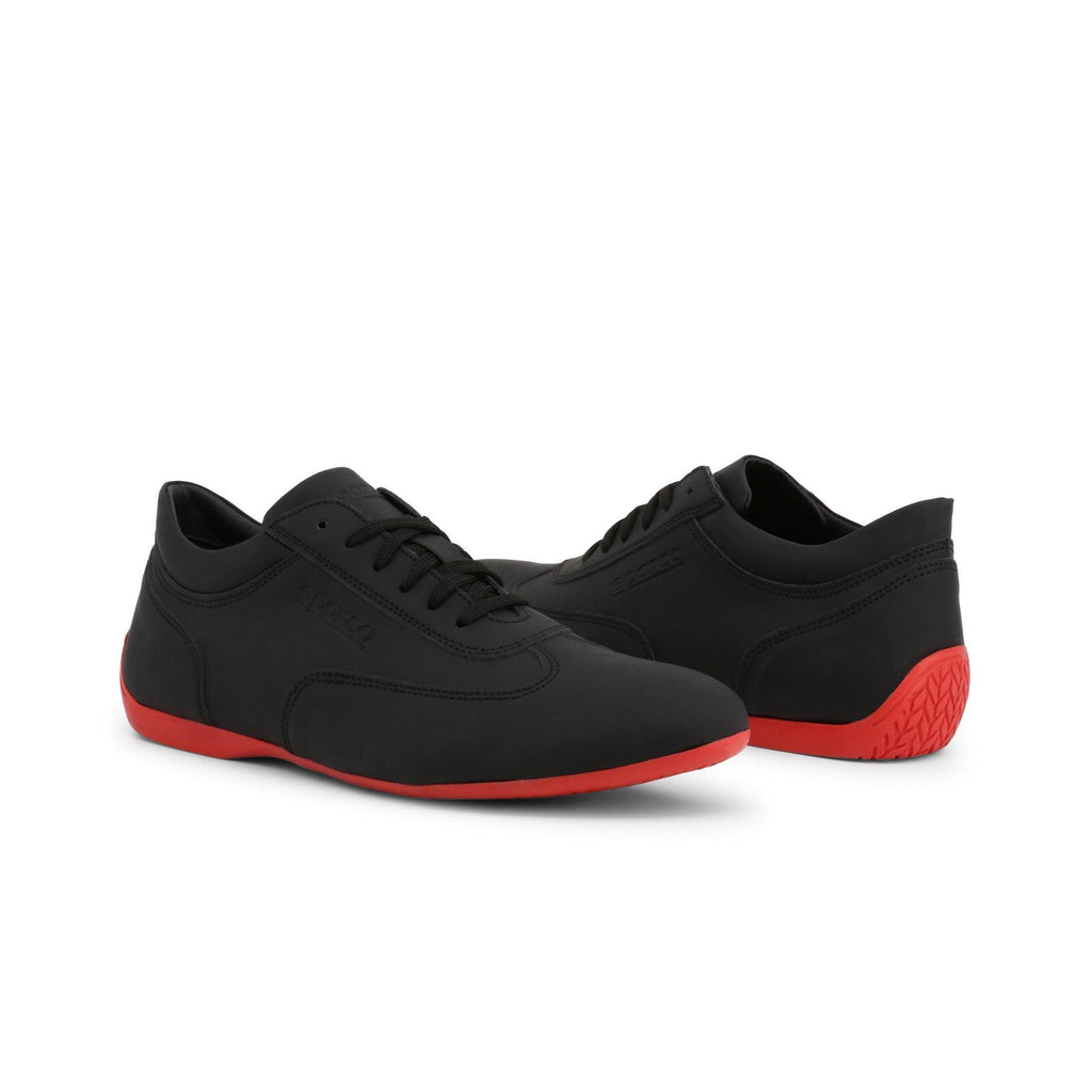 - Contraste llamativo: El negro profundo del símil cuero combinado con la suela exterior roja flamante hace eco a los colores icónicos de los coches de carrera.